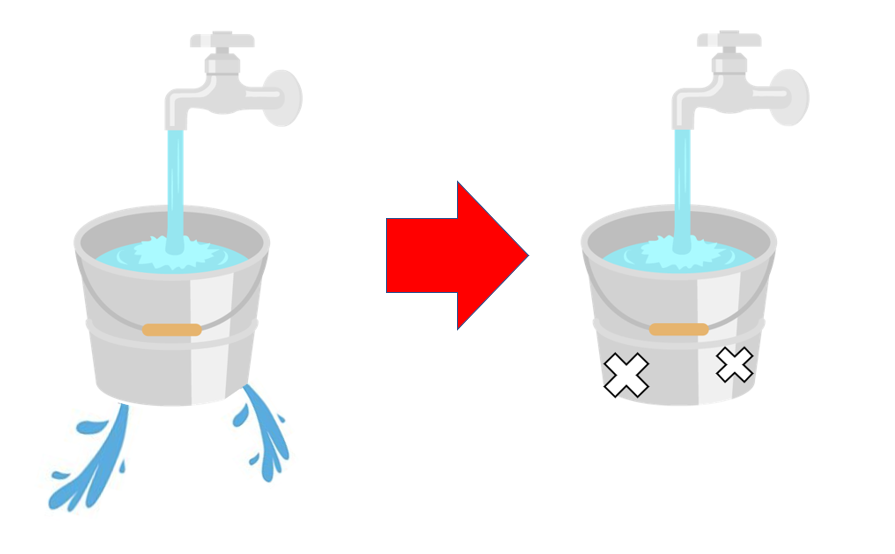 例えばバケツに水を溜めるのに、穴が開いた場合どうしますか?