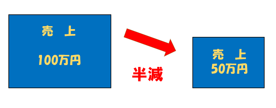 例えば今月の売上が先月に比べて半分(100万円から50万円)に下がったとします。