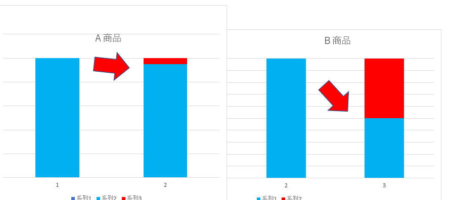 下の図のようにA商品とB商品では影響がちがいます。