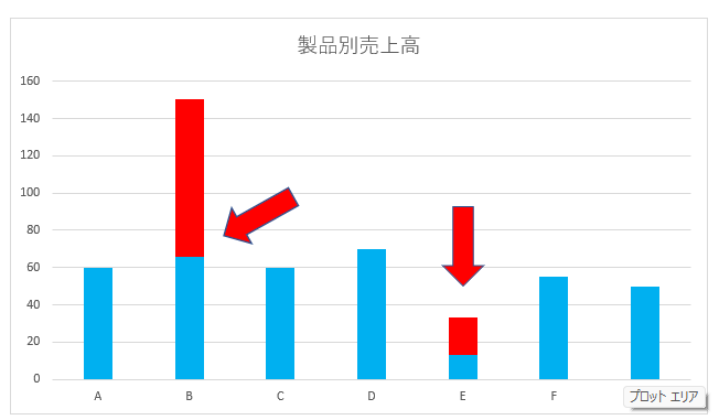 同じく、図のようにB製品とE製品では会社への影響は変わります。