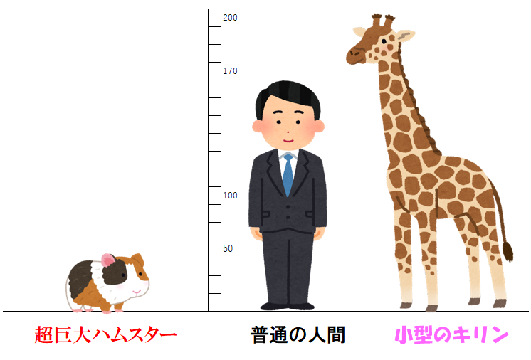 「巨大なハムスター」と「小さいキリン」はどちらが大きいのか。