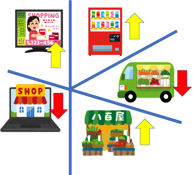 「どこで」で考えることは流通や販売方法の「違い」を見つけることです。