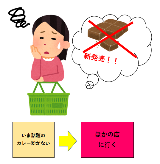 ということは、お客さんはうちで「カレー材料を」買ってくれないのではないか。