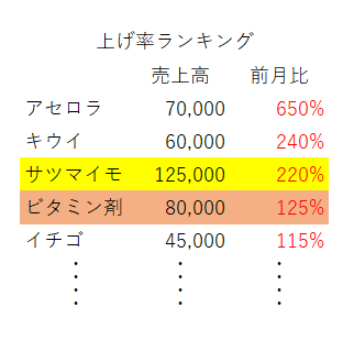 ここで売上の「上昇率ランキング」を見てみます。